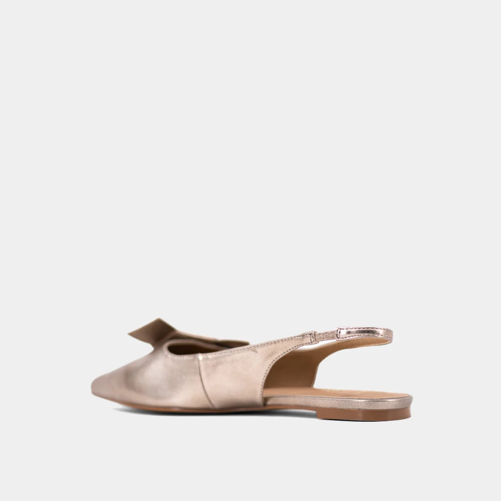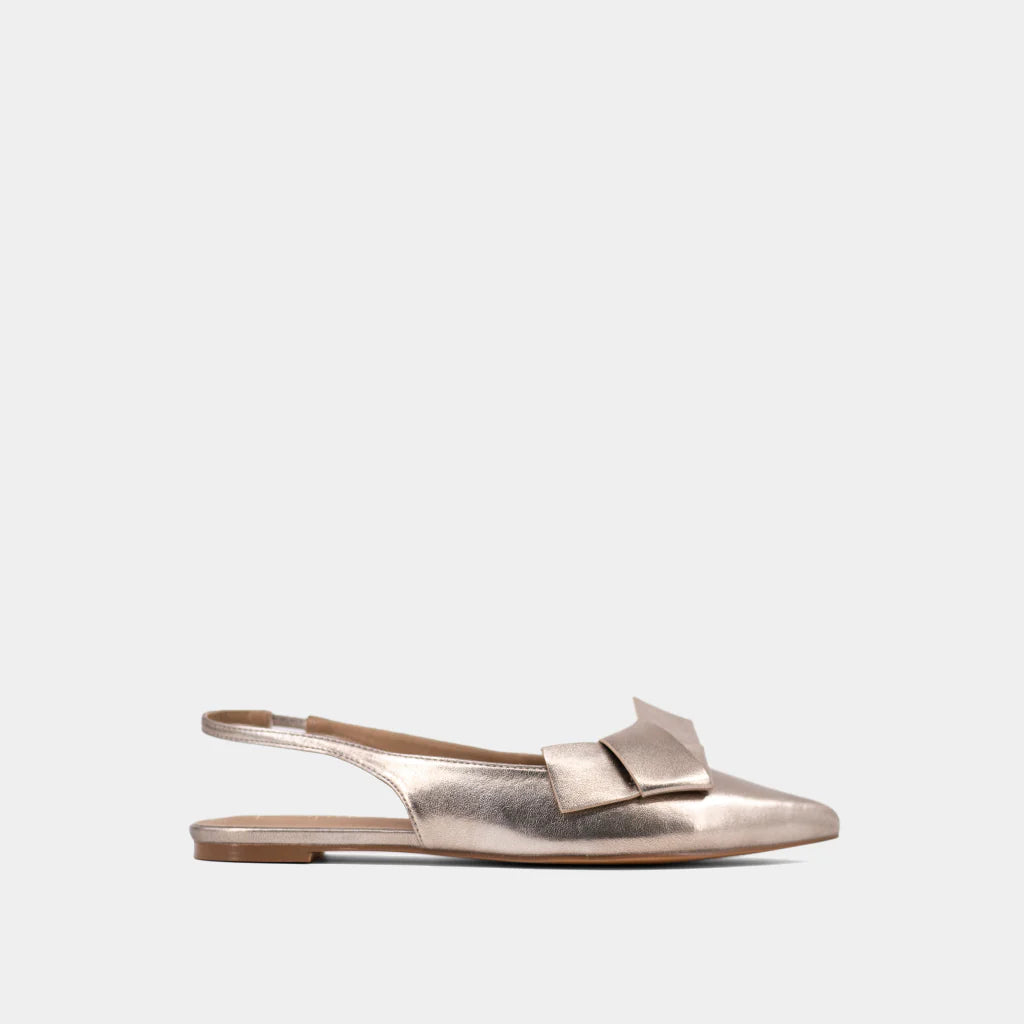 Step into shine with AUDREY in Gold. These glamorous slingback flats, made from luxe faux leather, feature a pointed toe and an eye-catching oversized bow. With their radiant metallic finish and cushioned insole, they blend fashion with comfort effortlessly. The flexible sole ensures easy movement, making them ideal for both day-to-night transitions. Elevate any outfit with a touch of golden elegance, perfect for when you want to make a statement.