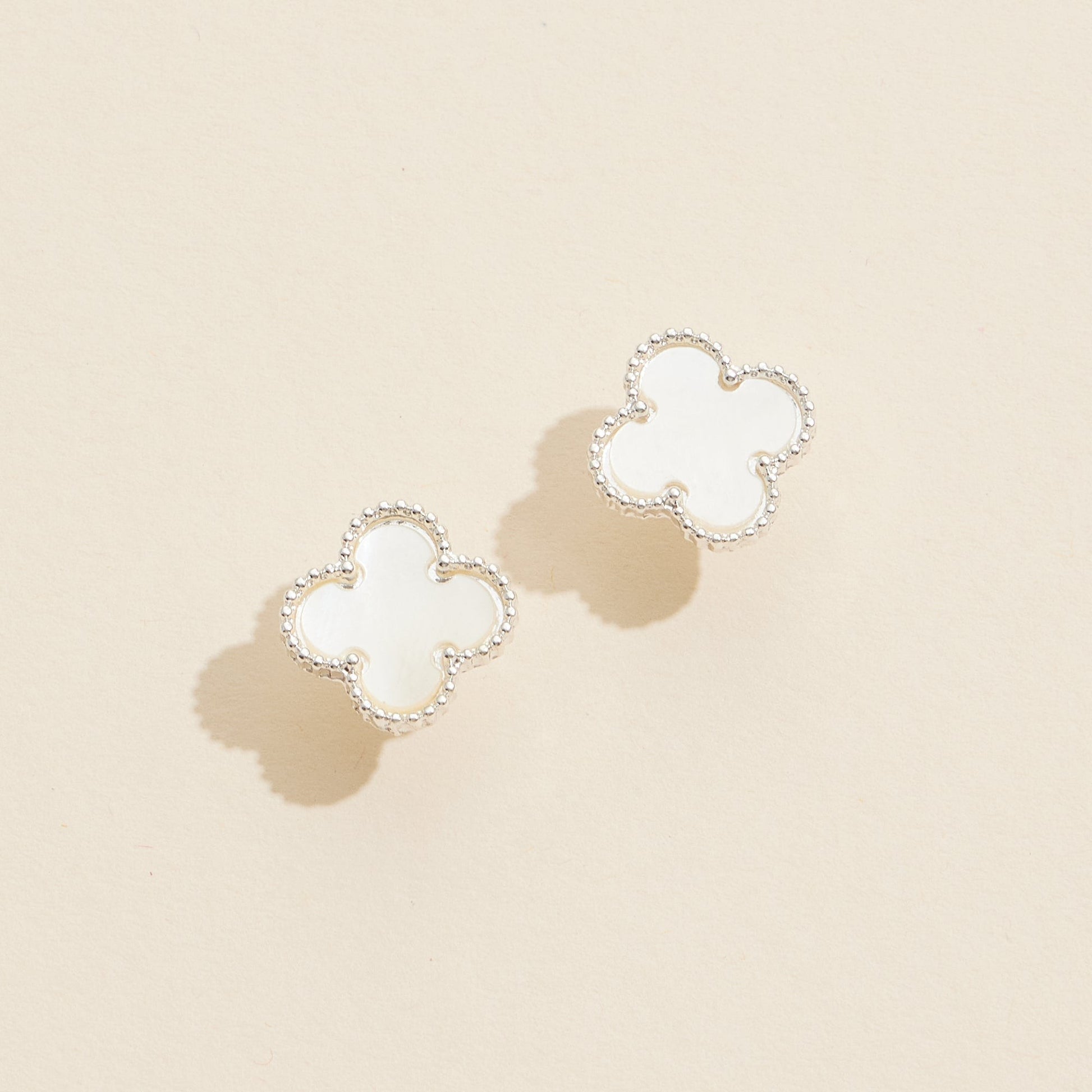 Introducing our stylish Clover Shape Shell Stud Earrings, the perfect accessory for those who want to add a touch of fashion to their look. These unique earrings feature a delicate clover design created from a beautiful shell material. Elevate your style with these elegant earrings.