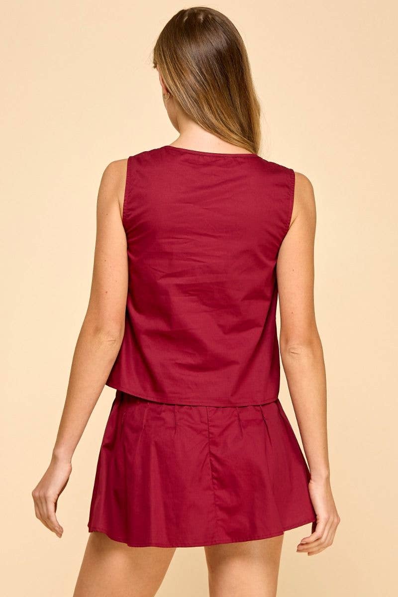 Pleated Chest Button Down Sleeveless Top
