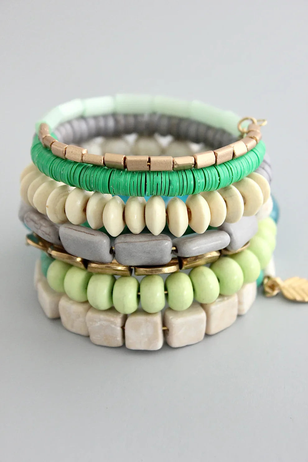FINAL SALE David Aubrey- Aqua, Green, Gray, and White Wrap Bracelet