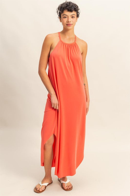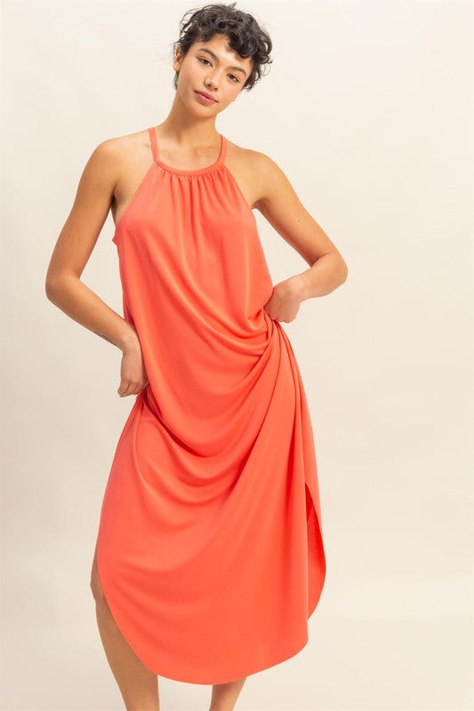 FINAL SALE Halter Neck Asymmetrical Midi Dress