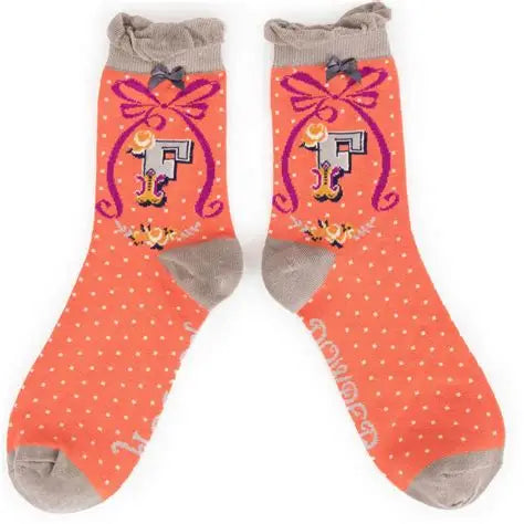 FINAL SALE Powder Initial Ankle Socks- F, I, O, Q, X, Y, Z