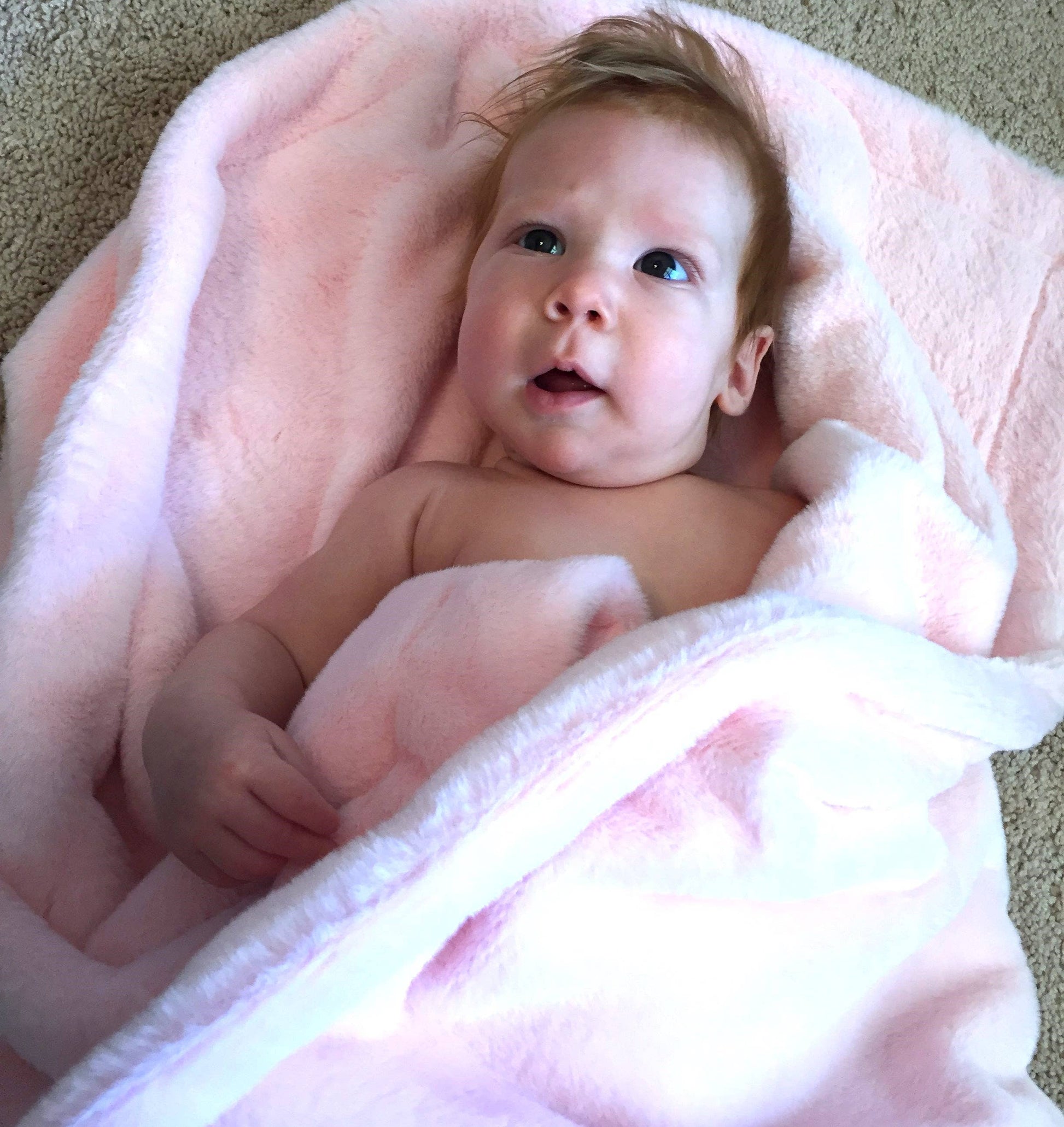 This luxurious baby blanket is so soft you'll want to snuggle in it yourself! Soft as a whisper, the blanket measures a generous 30" x 40" and is beautifully wrapped with a ribbon, ready for gifting. It makes a fabulous gift and can be monogrammed! A perfect baby gift that will be cherished for years to come. 100% polyester Machine wash, Gentle Cycle, Tumble Dry, Low Heat. Do not bleach or iron.