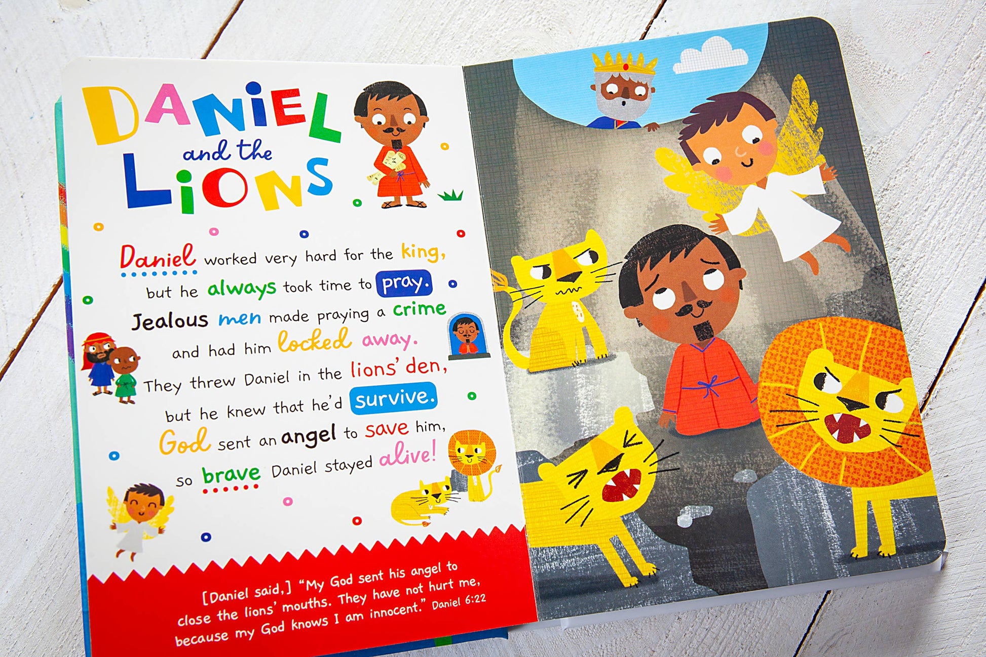 Set sail with Noah, follow Moses through the Red Sea, and marvel at Jesus’ miracles as you read this fun collection of Bible stories together. Enjoy the sweet rhymes, then follow the Scripture to talk, question, and explore even more! Designed for toddlers and with a fun carry handle, this beginner’s Bible offers the perfect introduction to Bible stories. Features: hardcover, 26 pages