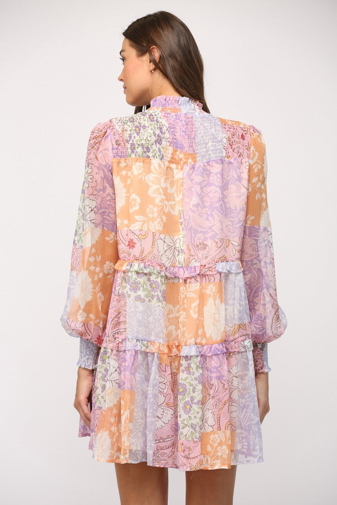 FINAL SALE Patchwork Print Chiffon Dress