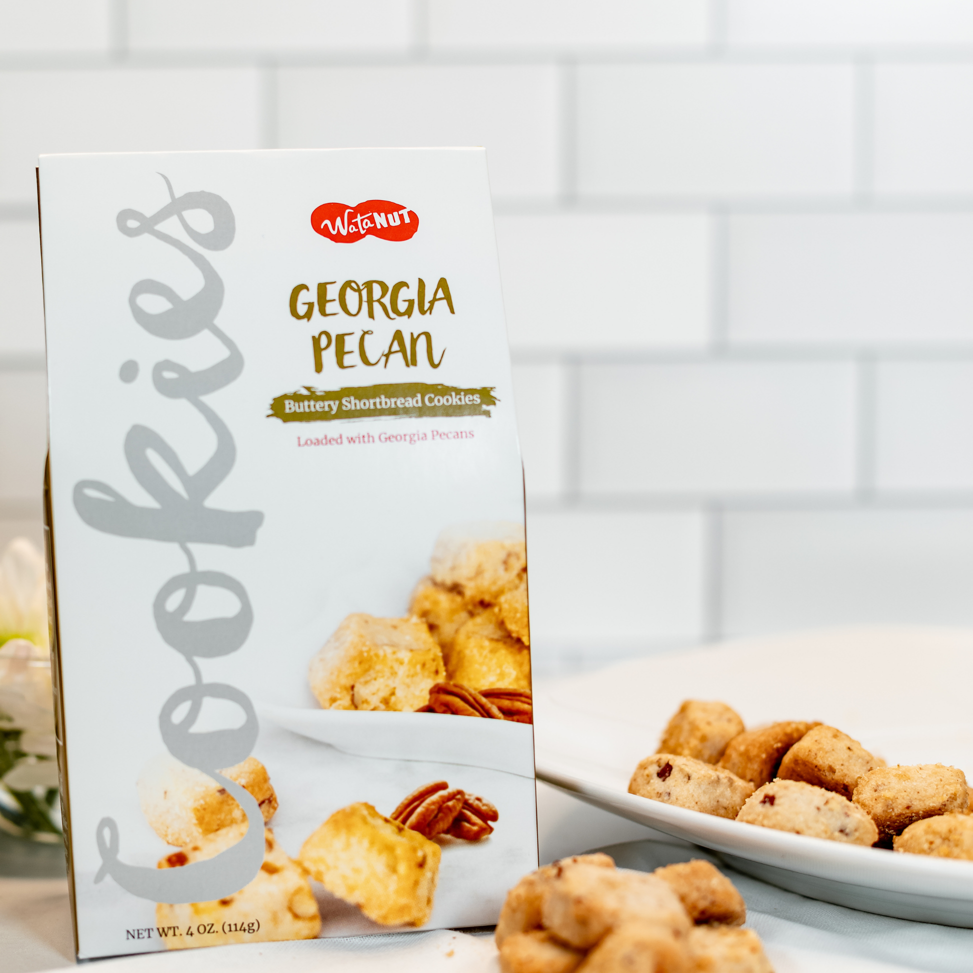 Made from scratch, our buttery shortbread cookies are loaded with Georgia Pecans and simply melt in your mouth. The freshest ingredients and a dusting of demerara sugar make our pecan shortbread cookies unbelievably light, delicate and crisp.