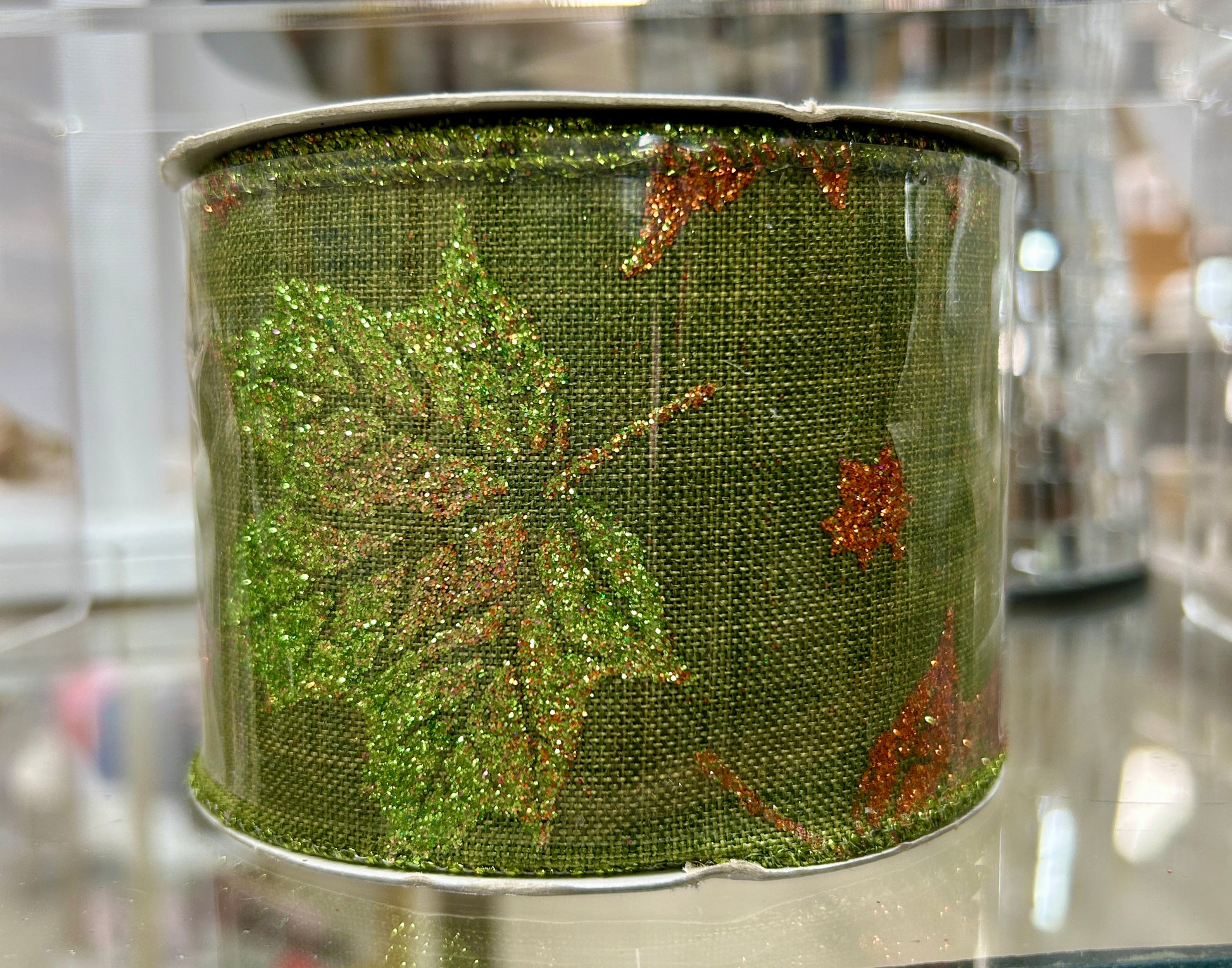 Fall Maple Leaf, Sparkle Linen Wired Ribbon-2.5"