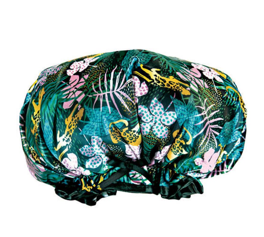 - Waterproof lining keeps styled hair dry in the shower