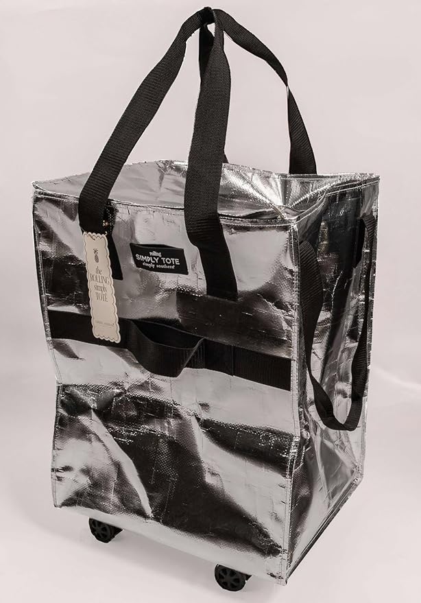 This rolling tote is perfect for carrying extra clothes, accessories, or any other items you need on the go. The five wheels make it easy to maneuver and the pocket in the front makes it easy to grab what you need when you need it. It also collapses for easy storage when not in use. Made of 100% polypropylene.