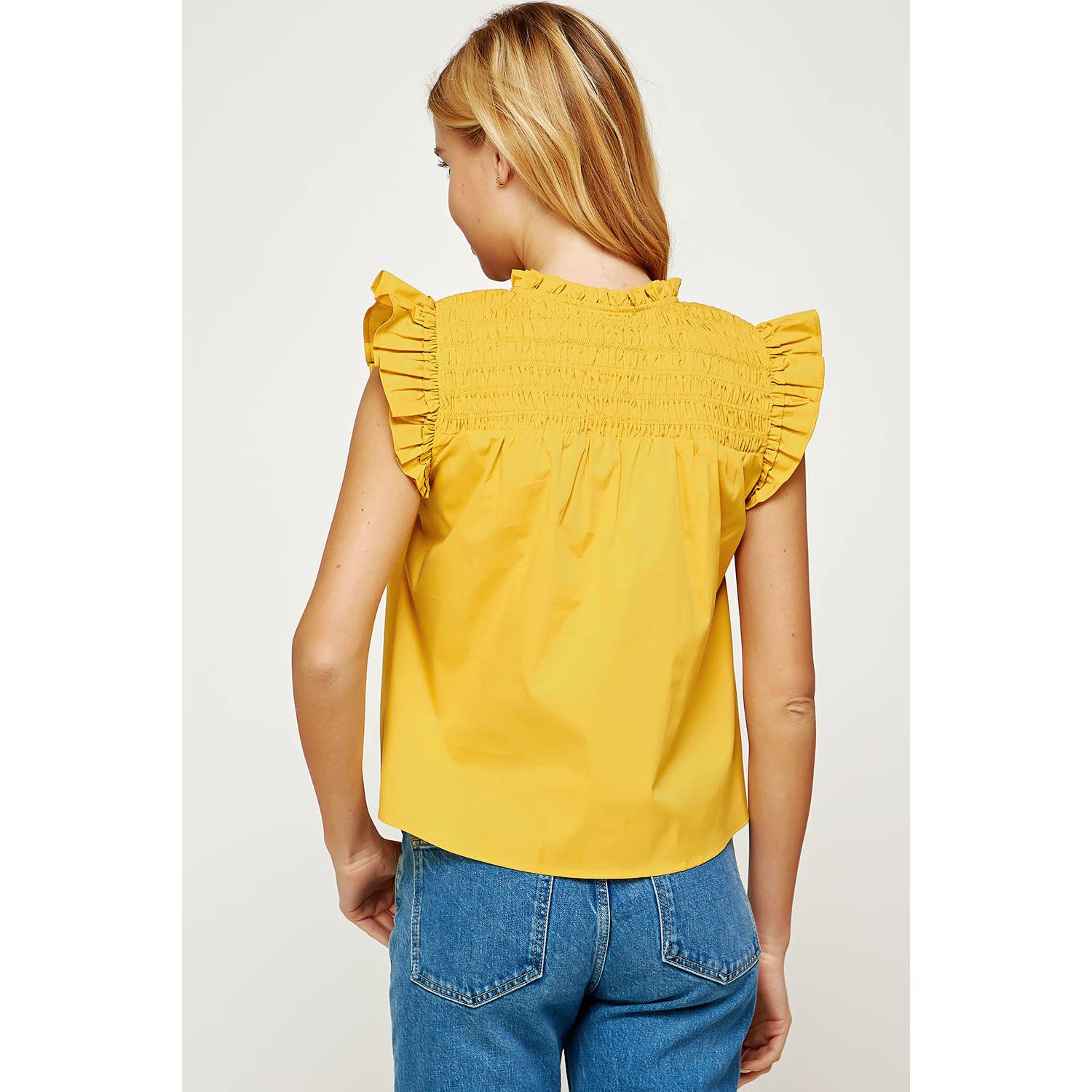 Smocked Ruffled Poplin Sleeveless Top