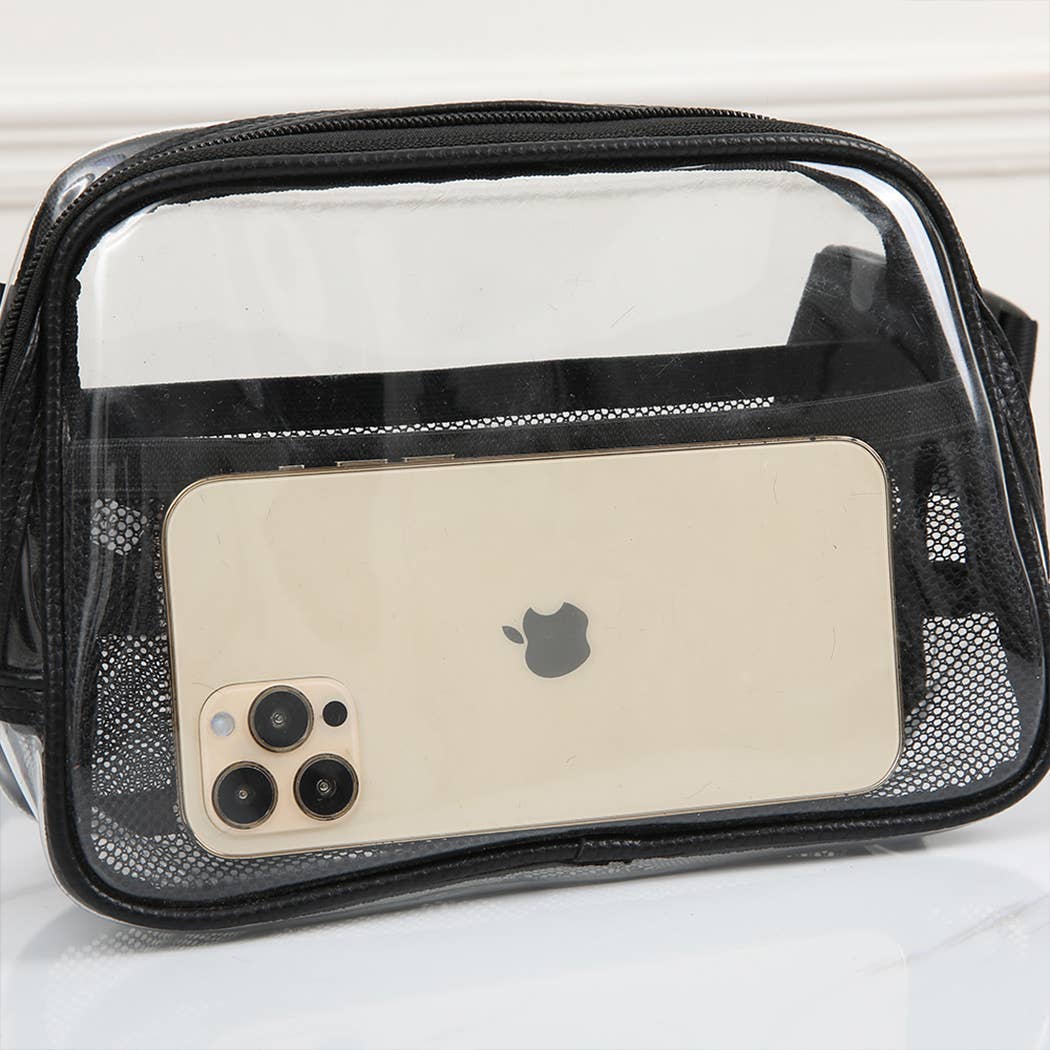 Solid Color Outlined Clear Belt & Sling Bag - Light-Weight, Simple Design for Everyday Essentials - Perfect Daily Sling Bag to take Anywhere for Summer - Strap Detachable & Changeable - Zipper Closure with Multiple Pockets - **Size: Approx. 7.8" L x 2.4" W x 5.5" H **
