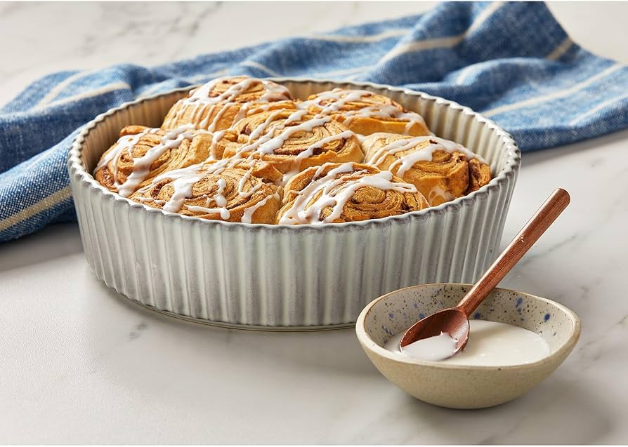 hello, oven-to-table convenience! designed to help make social gatherings easier, our stinson stoneware is made for home entertaining and gifting. this fluted baker is a perfect addition to the kitchen. made from highfire, durable stoneware, this piece is beautifully versatile and functional. oven safe up to 480 degrees f. slight variations in color are to be expected—each piece is one-of-a-kind, no two pieces will be exactly alike.