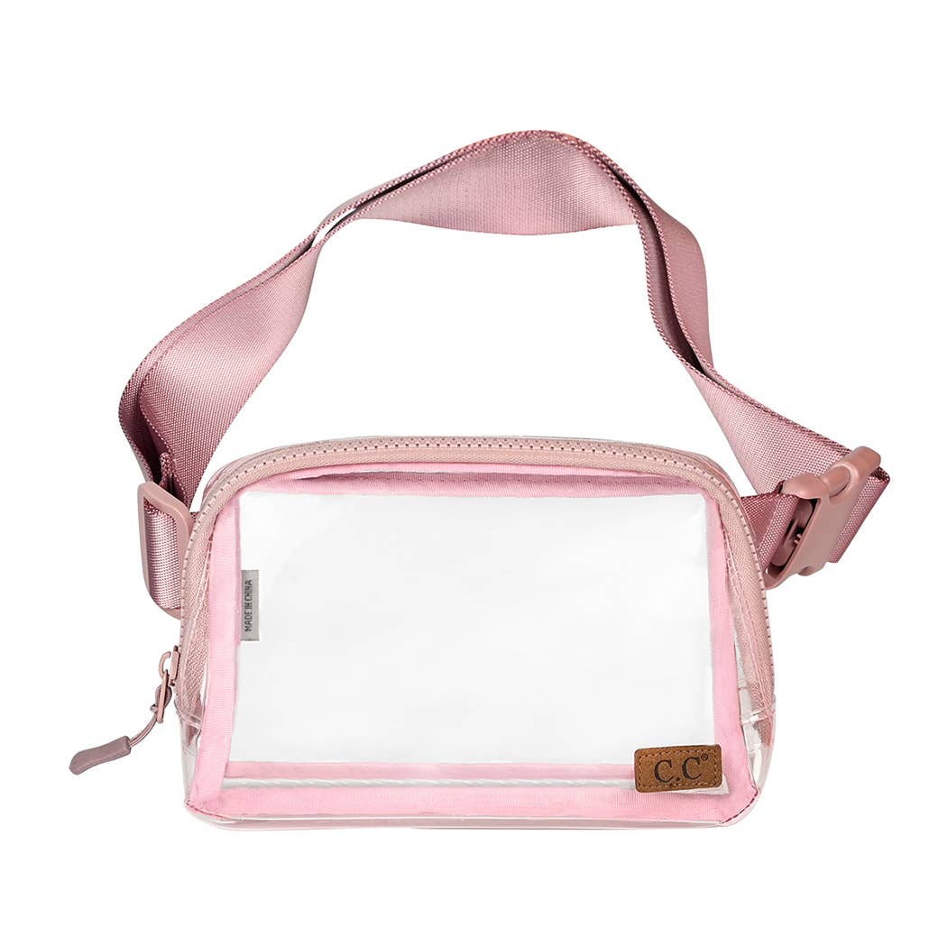 Clear Square Fanny Pack Belt Bag in Rose- Belt Buckle Closure with Adjustable Strap - Zipper Closure Pouch - Perfect Fanny Pack for Summer Daily Essentials - 100% TPU **Size: Approx. 8.5" L x 5" W x 2.25" D**