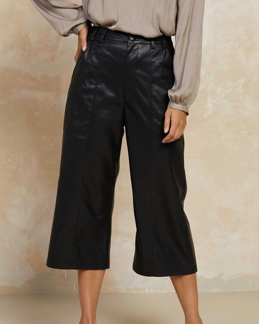 FINAL SALE Vegan Leather Wide Legged Pants